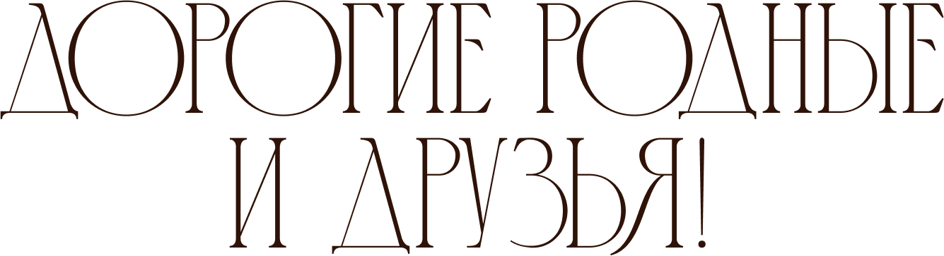 В этот особенный день мы хотим оказаться в окружении самых близких и дорогих нам людей. С огромным удовольствием приглашаем вас разделить с нами этот волнующий праздник!